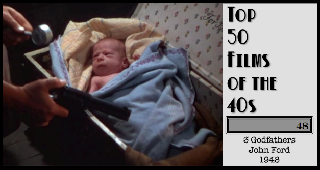 The story centers on a trio of Wild West criminals, cattle rustlers and bank robbers in the 1948 film, whose attempt at evading the law is complicated when their escape route through a dust storm in the desert leads them to a woman giving birth in a covered wagon. They provide her support in a delivery of enough strain that she effectively dies in childbirth, using her last breath to extract a pledge from the fugitives that they will look after her newborn son. The remainder of the film covers the travails of the men, lacking in water and pursued by a posse, as they protect their charge. In many ways, it is the most conventional of westerns, complete with a standoff between good guys and bad guys. The inversion of exactly who the heroes of the piece are stands as the first indicator that a slightly different version of the story is unfolding. And then there is the presence of the child, which gives the film both humor and poignancy above the standard level of the era’s westerns. It may not be some daring genre deconstruction (that sort of thing would start arrived in earnest a couple decades later), but it does offer something deliberately different within a familiar form. 3 Godfathers hints as the breadth of tales that can be presented out on the frontier.