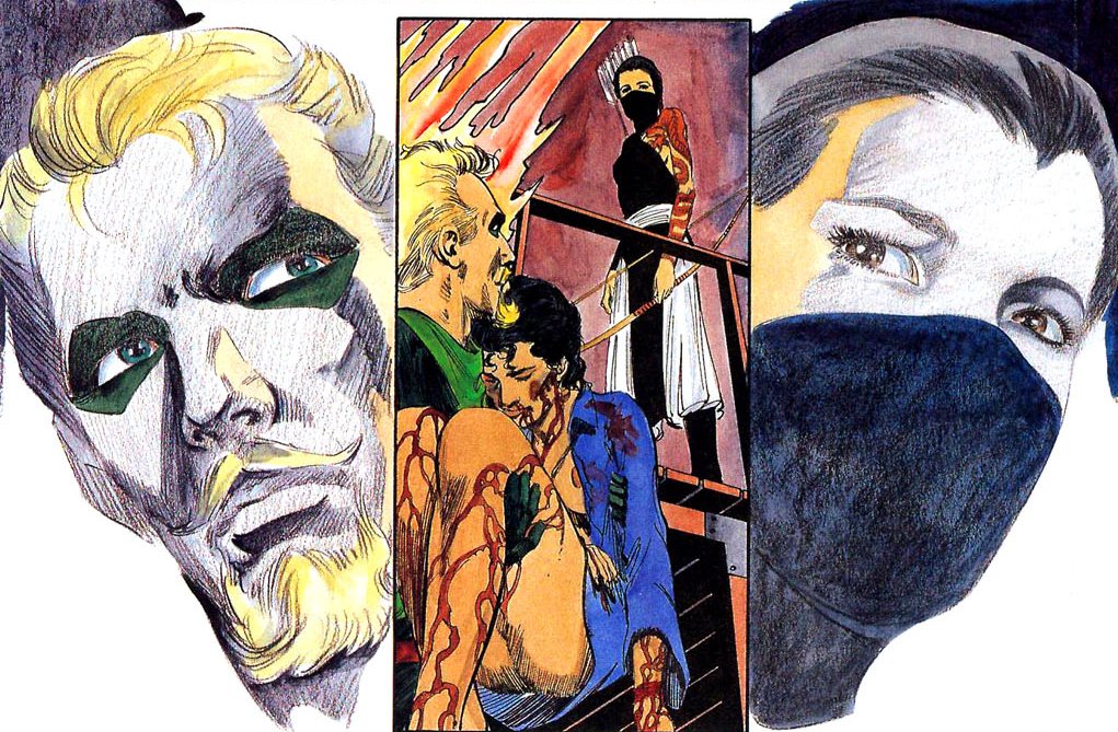 That’s Shado overlooking Green Arrow’s rescue of Dinah. Introduced in the limited series, she represented another unfortunately byproduct of the era, a dopey excitement over introducing Japanese characters as uniformly mystical ninjas who traverse the world as dispensers of deep wisdom while also kicking ass. (As I’ve argued before, the acorn that grew the mighty oak of this era of grim and gritty comic book stories is Chris Claremont and Frank Miller’s Wolverine limited series.)