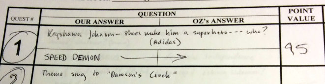 This weekend, I’ll participate in The World’s Largest Trivia ContestTM. I’m a little preoccupied with preparations for that, including some significant travel. To provide some sense of the madness of minutiae that dominates my mind this week, I’ll return to a bit of a tradition around these parts and share a few personally memorable answers from the twenty-five years or so that I’ve been involved with this contest, in one way or another. In this instance, I’ve reminded myself of the answers by flipping through our team’s old answer sheets.