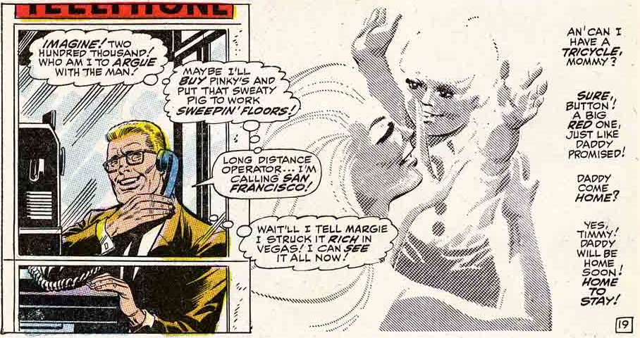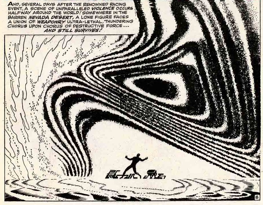 These elements are only the start of what Steranko has in mind. The plot barely registered with me. It still barely registers with me when I reread it. Instead, I bob along, awash in the visuals, especially when Steranko uncorks something uncommonly dazzling for the comic book page.