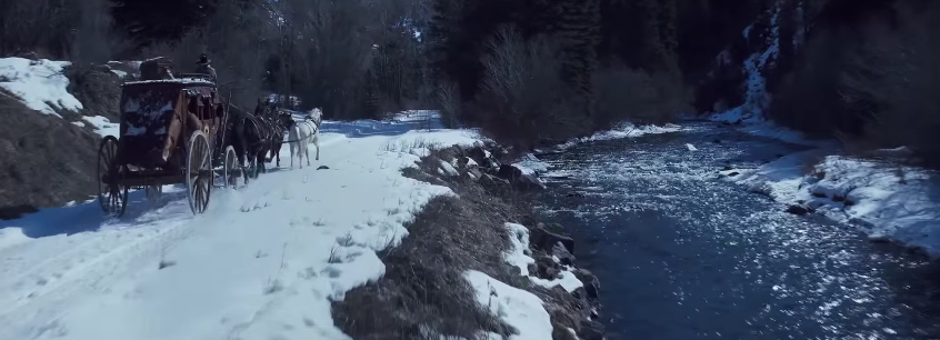 Part of Tarantino’s rut stems from his adherence to signatures that have outlived their usefulness. Though his willingness to subvert expectations in how time moves in a narrative has served the work well in the past, the point that The Hateful Eight doubles back exemplifies the film’s problems. It is another set piece, stirred into being by Tarantino’s fascination with the mechanics of brewing trouble. It also contributes practically nothing to the greater film, answering questions that weren’t worth asking and not answering them in a particular compelling way, at that. It doesn’t help matters that the sequence also features the typical Tarantino blind spot of including bad acting by a person he thinks is bad ass in real life. In this case, Zoë Bell, who Tarantino has been admirably devoted to ever since she served as Uma Thurman’s stunt double for the Kill Bill films, strides through her moments like a cartoon rabbit. Even in a film full of acting ratcheted up to extreme levels, Bell’s work is jarringly out of place, undermining what little seriousness still remains in the scene.