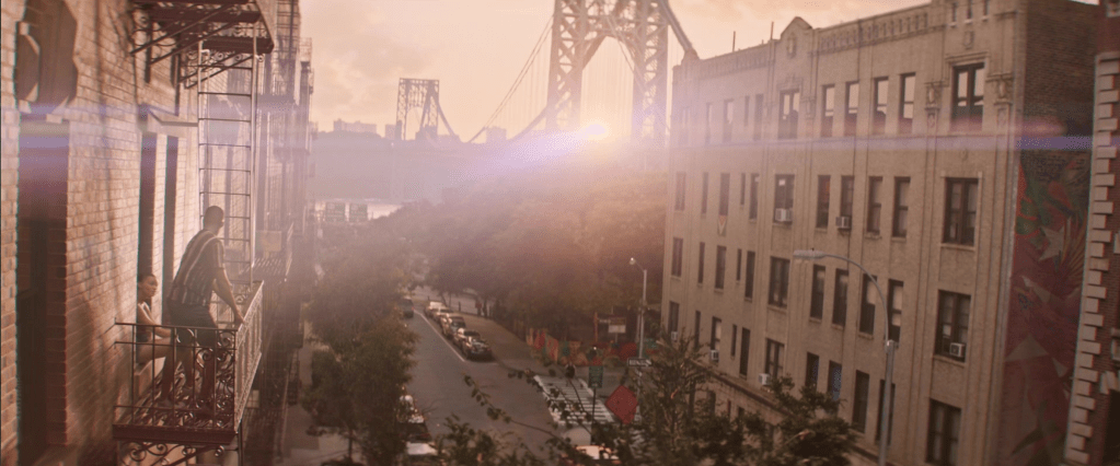 In its themes — of gentrification, of cultural heritage, of the families built apart from bloodlines — In the Heights is movingly, atypically sincere. There’s nothing particularly novel or innovative about the storytelling beats it moves to. There doesn’t need to be. There is instead conviction, a certainty that the heart and earnestness that underlies every line and every lyric is enough to knock aside cynicism. Chu mirrors that fundamental trait in his directorial approach. He admirably refuses to shy away from the artifice of the musical. That allows the film to be fully invigorated by the razzle-dazzle showmanship of it all, forging a pact with the audience that if they open themselves up to the magic, it will be worth their while. The tactic has rarely been employed so well since the years when Gene Kelly bounded across the screen with athletic pleasure. This shot wasn’t thrown away either.