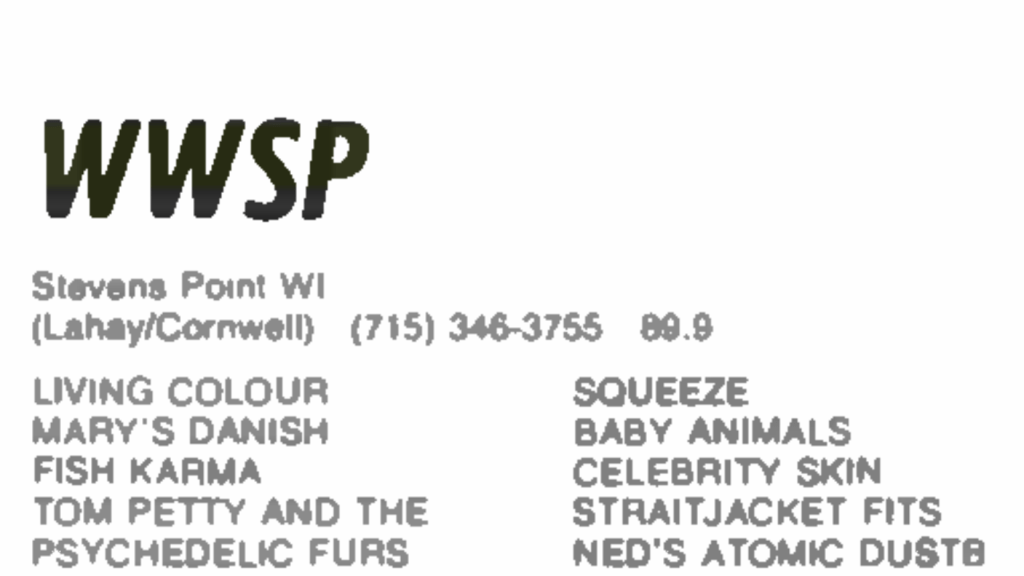 Because of a task I’m gladly — gratefully even — taking on this week, my mind is regularly roaming back to consider the playlists I and my cohorts filled out at student-run radio station WWSP-FM, which operates at an assigned frequency of 89.9 megahertz, prompting all who sit behind the microphone there to round up and call it 90FM. Luckily, I don’t have to rely entirely on my faltering, fumbling memory to tell me what was played during my distant undergraduate years. I have resources at my disposal.