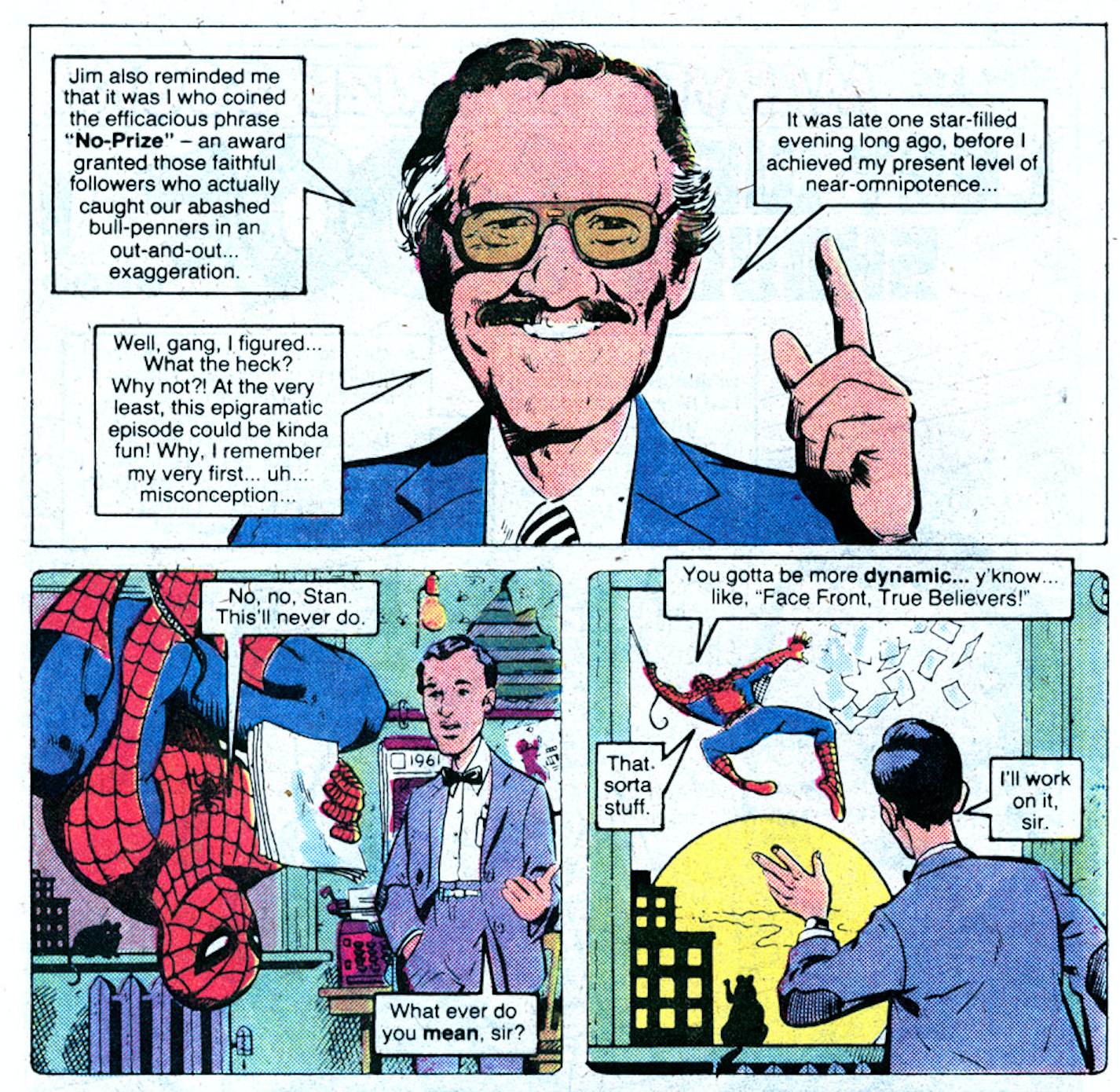 In the early nineteen-eighties, the House of Ideas effectively fessed up to a couple decades worth of blunders with a one-shot. Scratching a whole lot of my personal itches, The Official Marvel No-Prize Book was heavy with Marvel lore, drawing from stories across a range of years. Essentially a Marvel comics gag reel, the comic played to the delight I had in clumsy bumbles in pop culture, which I would consider a mortifying factoid about my younger self if it didn’t happen to be something I shared with a whole lot of people at that time. Bloopers were having a moment. Written by Jim Owsley, the comic book positioned Lee as the official guide through the storytelling wreckage.