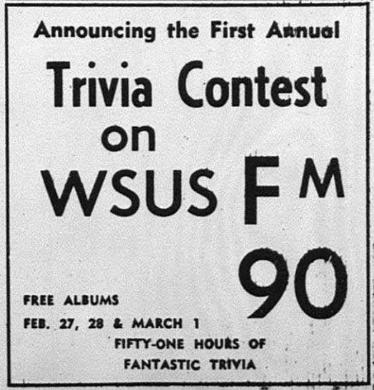 When I arrived at the station, in the fall of 1988, the annual fundraising event had already grown to the size that earned in the only mildly suspect honorific The World’s Largest Trivia Contest. The first year I was involved, there were more than eight thousand players on around three hundred forty teams, far outpacing similar weekend-long contests run by other college radio stations in the Upper Midwest, such as KVSC-FM at St. Cloud State University and WLFM at Lawrence University. Trivia wasn’t simply the station’s yearly highlight; it was arguably one of two or three biggest events of the year in the whole city. I remember walking through the usually bustling downtown on the Friday night of the contest to find streets and stores as abandoned as a ghost town, and every empty business I entered was playing the station’s broadcast loudly, hardly a common occurrence the other fifty-one weeks of the year. For those three strange days, WWSP was the dominant presence in the community.
