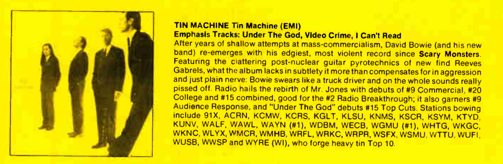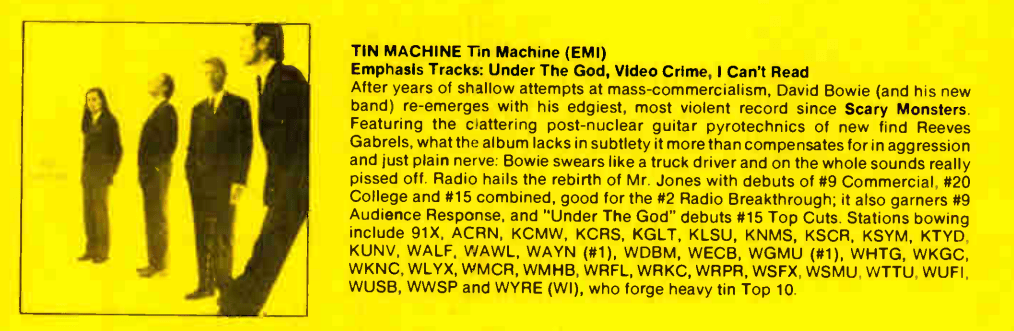 We were always a little more benevolent towards the legacy acts, and this album’s officially Tom Petty’s solo debut, was atop the character were reported for the previous issue of CMJ. Given that, I’m a little surprised this wasn’t a little higher on the station’s year-end chart. I have a feeling we nudged it through rotation at a rapid pace, especially once it really started taking off on commercial radio.