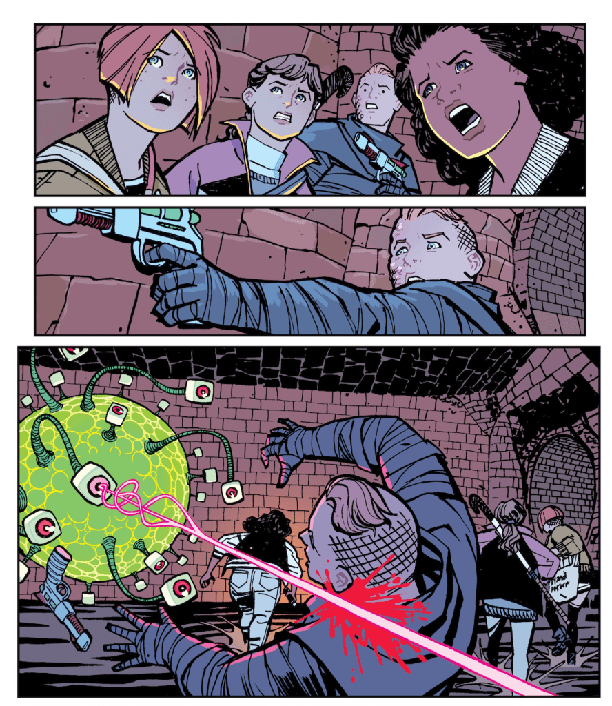 They initially think they’re in for a tougher pre-dawn shift on this particular day because it’s November 1st, and there are mischievous delinquents who are still up to no good carrying over the previous night’s Halloween festivities. Figuring there’s safety in numbers, they decide to largely stick together. It turn out that bullies with cartons of rotten eggs are the least of their worries. Vaughan, the writer of Y: The Last Man and Saga, does what he does expertly in those other comics: He lets his science fiction–based imaginings roam wild and free.