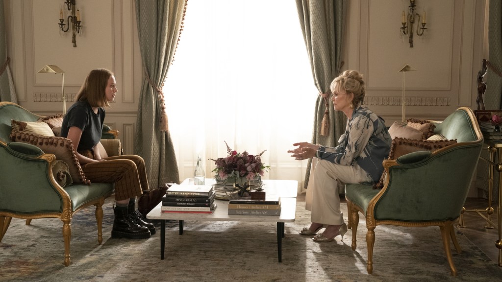Most of the interactions play out precisely as expected in the episode. Both Deborah and Ava are resentful of the unwanted odd-couple collaboration, so they sulk separately and then snipe at each other mercilessly when brought together. The real inspiration in the script — indeed the very element that forecasts the strengthening of Hacks as it progressed — comes at the end, when the working relationship between Deborah and Ava appears to be over before it really begins. After Ava leaves the meeting, certain there’s no job to be had, Deborah follows her out, compelled to discuss the joke that got Ava in trouble in the first place. Specifically, Deborah is unimpressed by the gag, so she can’t help but engage in some impromptu workshopping with Ava to strengthen the material. It’s that connection made in creating comedy, hammering at the language in a line until it’s strategically honed to get a laugh, that sets the relationship. If much of “There Is No Line” is fairly general, its finish is solidly specific, built on an interaction that only makes sense for these characters, in this setting, at this time.
