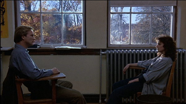 Children of a Lesser God (Randa Haines, 1986). Much as I admired Children of a Lesser God at the time it was originally released, I’ve long mentally consigned it to the category of earnest nineteen-eighties dramas that probably looked fairly soft when held up against edgier fare that followed. My instinctual dismissiveness was mistaken. Adapted from a 1979 stage play by Hesper Anderson (who is co-credited on the screenplay with Mark Medoff), the film is set in and around a school for deaf children. The story follows the complicated romance between a teacher named James (William Hurt) and the school’s janitor, Sarah (Marlee Matlin), a strident young woman who’s also an alumnus of the institution. As directed by Randa Haines, the film skillfully explores the challenges that emerge in the relationship, many of them stemming from the fitful progress James makes in understanding that he has an obligation to value and understanding experiences and preferences other than his own. This is film is from right in the heart of the ten-year stretch when Hurt was at the peak of his powers, but Matlin truly dazzles, investing the character with depths of feeling and vivid personality. She fully deserved that shiny trophy she won for the role.