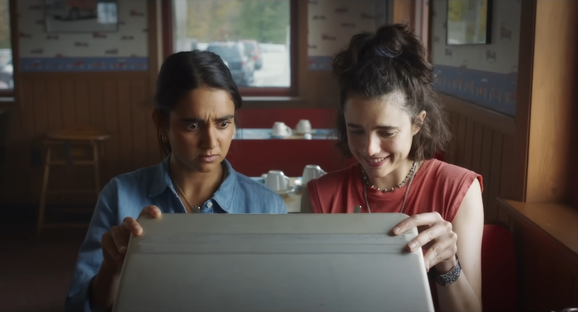 Like several predecessors that Ethan Coen signed his name to, Drive-Away Dolls features cheerful misfits who get mixed up in malfeasance, running afoul of brutish crooks, some who operated with godlike self-assurance and many who are a few stamps short of proper postage. In this case, the innocents who blunder into trouble are Jamie (Margaret Qualley) and Marian (Geraldine Viswanathan), lesbian pals who distract themselves from their respective woes by taking a road trip to Tallahassee. In an attempt to save money, they secure a vehicle from a driveaway service. Some other party needs to have a car transported to Florida, so Jamie and Marian do the driving. The problem is that the automobile in question has some illicit materials, and they weren’t the ones who were supposed to be behind the wheel, leading a crew of nasty fellows to become very invested in tracking them down.