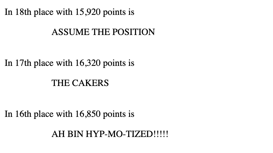 It is with weariness and gratitude that I note here the final placement of my team in the most recent staging of WWSP’s trivia contest. In the afterglow of a weekend of joy and revelry, I have little mental energy for other pithy commentary. I’ll leave it at then, then, except to extend a thanks to all who made the event happen.