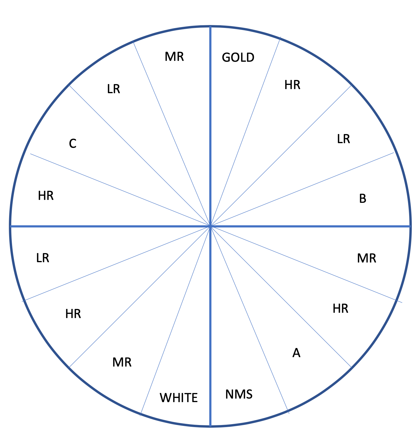 Of course, I couldn’t make the preparation for this shift easy on myself. I could have grabbed a whole bunch of 1990 album releases and put together a perfectly satisfying playlist. Instead, I wanted to properly, accurately recreate what one of the 90FM general programming shifts would have been like exactly thirty-five years earlier. That process started with me digging deep into my memory to come up with a reasonable representation of the station’s programming clock at the time. This was the guide for on-air staff to use, directing them as to which section of the new music rotation or the general library they should go to for each track selection. To the best of my recollection, it looked a lot like this at the time: