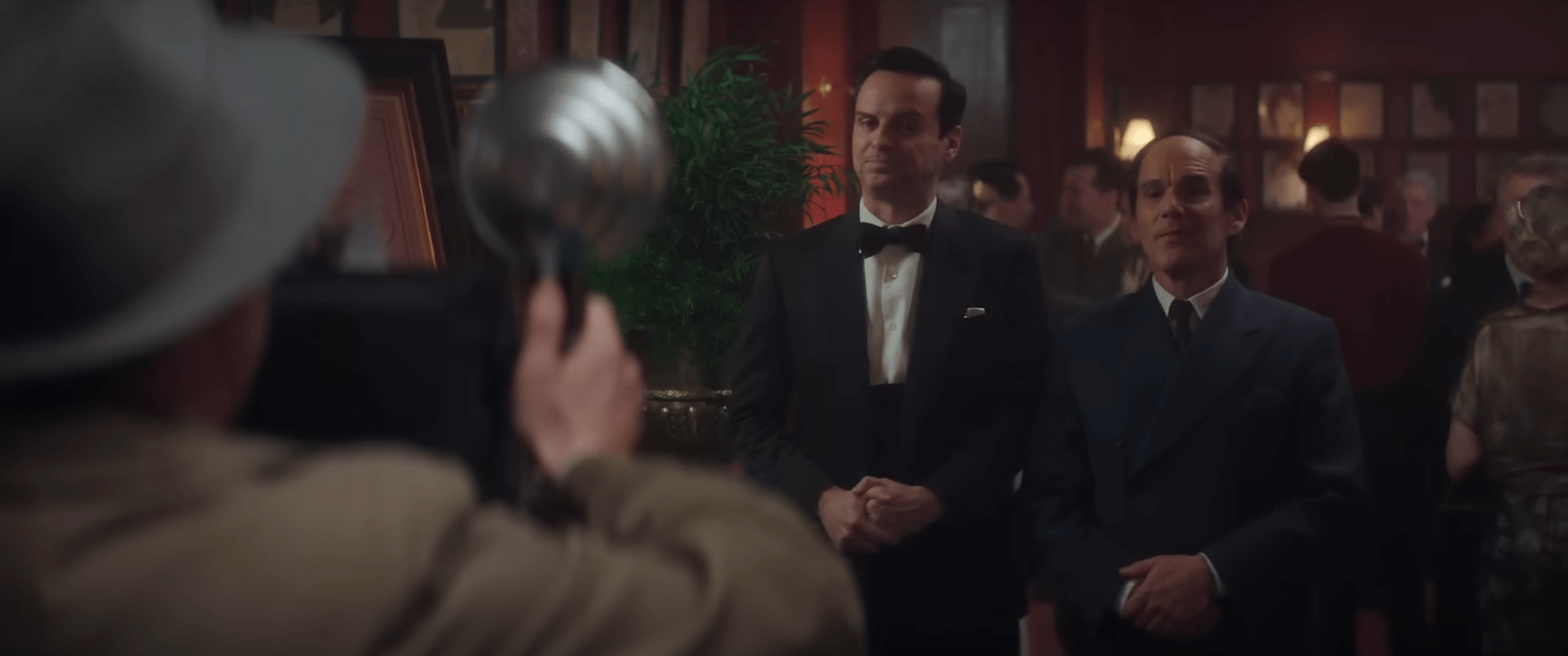 Blue Moon takes place almost entirely on the Broadway opening night of Oklahoma!, the 1943 cornpone musical that was so successful that it set new standards for a smash. For most of the people gathered at Sardi’s to celebrate the boffo debut, it’s a night of boundless pride and jubilation. Over in the bar, a different mood prevails. Renowned lyricist Lorenz Hart (Ethan Hawke) is wittily holding court and nursing understandable bitterness over seeing his longtime creative partner, composer Richard Rodgers (Andrew Scott), move on to a new collaboration that is already proving wildly prosperous.